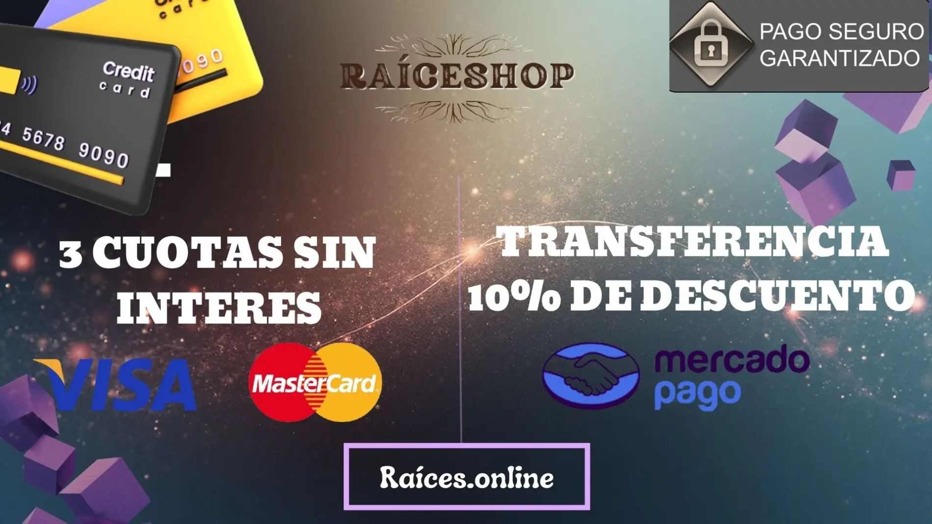En Raíceshop te ofrecemos diferentes opciones para que puedas realizar tu compra de forma fácil, rápida y segura. Contamos con pago 100% protegido y garantizado, para que compres con total confianza.