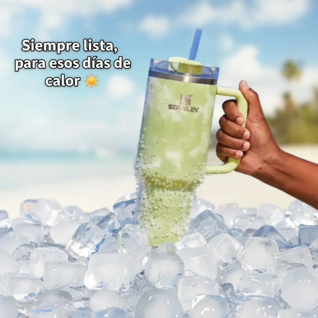 Cuando el calor calienta, el Quencher Stanley 1,18L se convierte en tu mejor aliado. Su aislación térmica de doble pared mantiene tus bebidas frías por horas, para que cada sorbo sea un respiro. Con mango ergonómico, tapa giratoria y bombilla reutilizable, te acompaña en la playa, en la oficina o en movimiento.