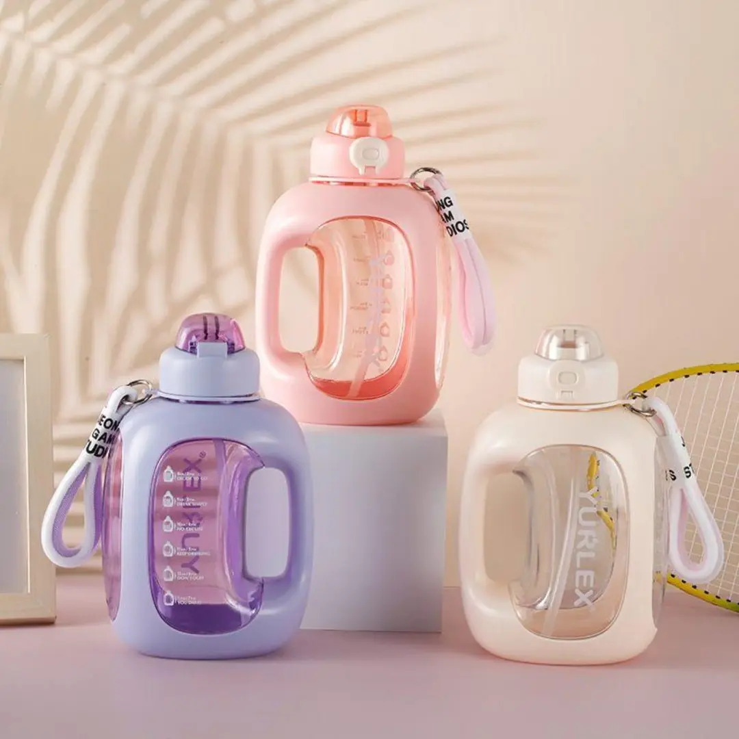 ¡Una botella resistente, práctica y motivadora para acompañarte en todas tus actividades! Elige tu color favorito entre los tonos surtidos y mantente hidratado.